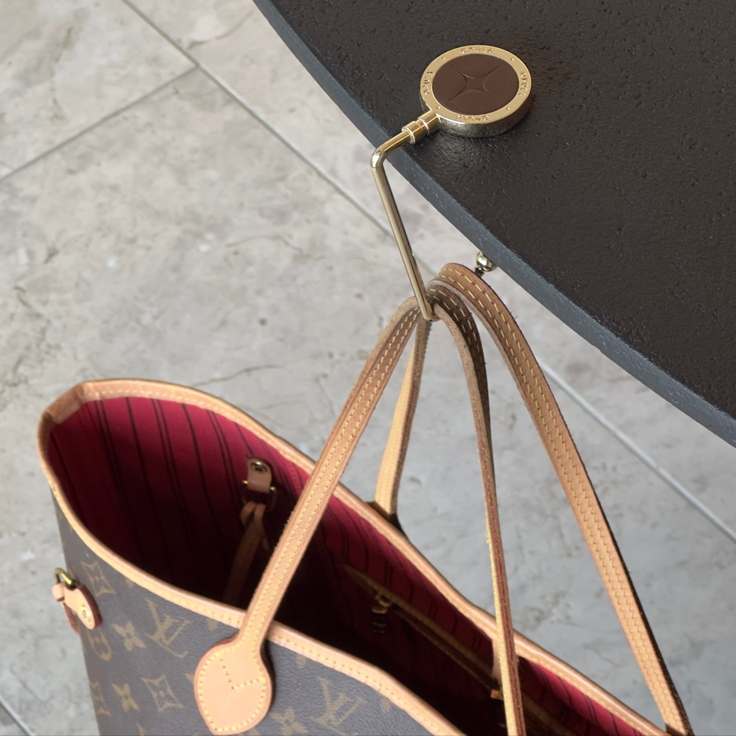 Crafted to mirror designer hardware, our hooks feature refined finishes that blend seamlessly with your bags.