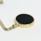 Simply take it out of your bag, place the top disc on a table, and hang your bag securely below. Designed for convenience, the top disc rotates to create a sleek, compact profile, making it easy to slip into even the smallest handbag compartments.